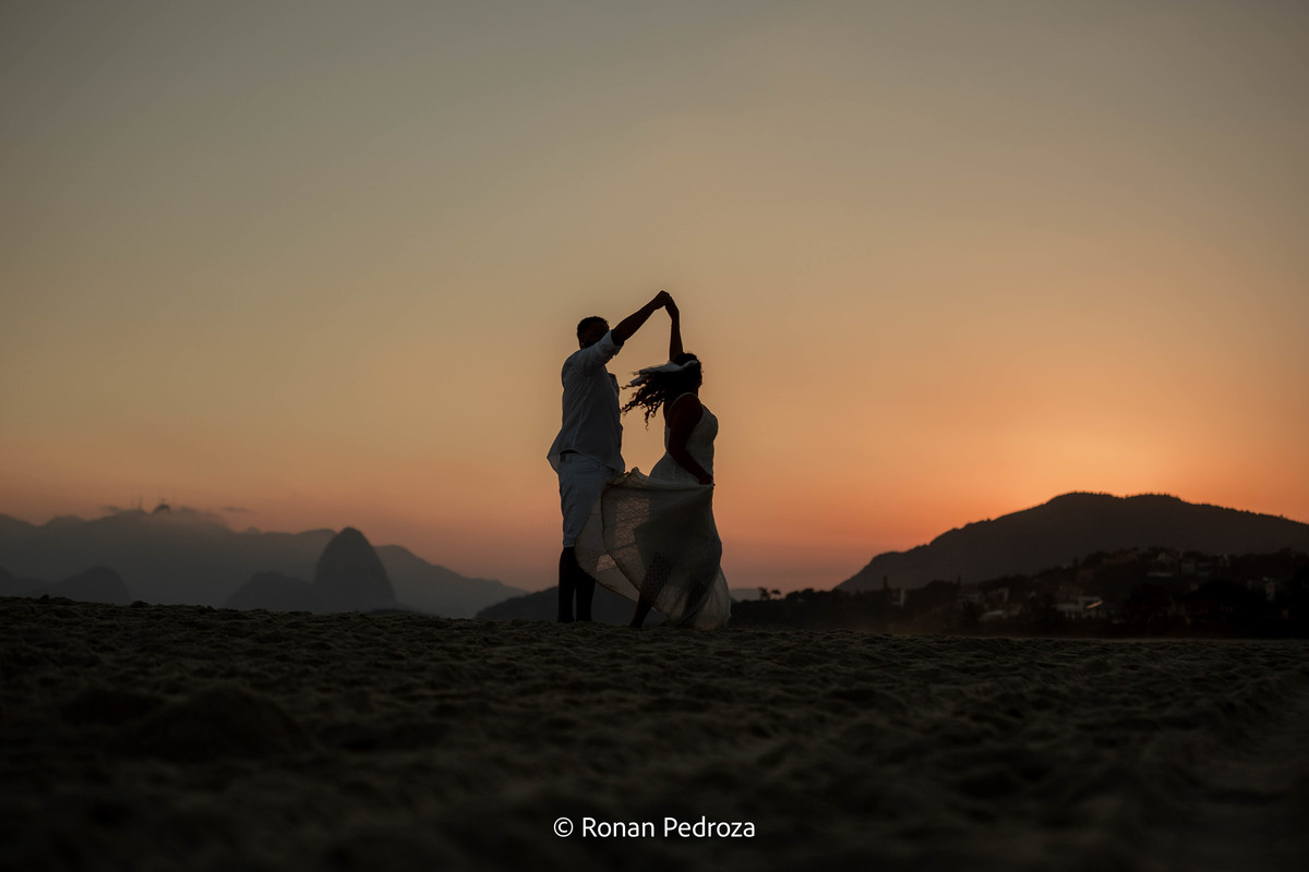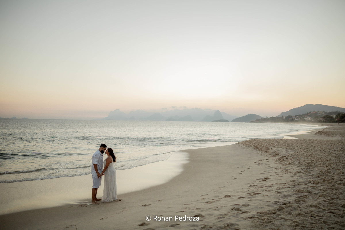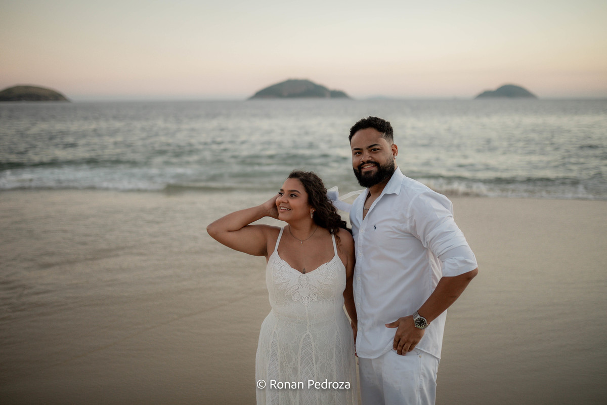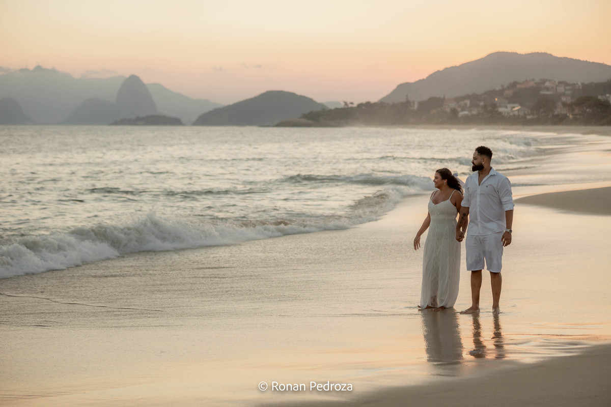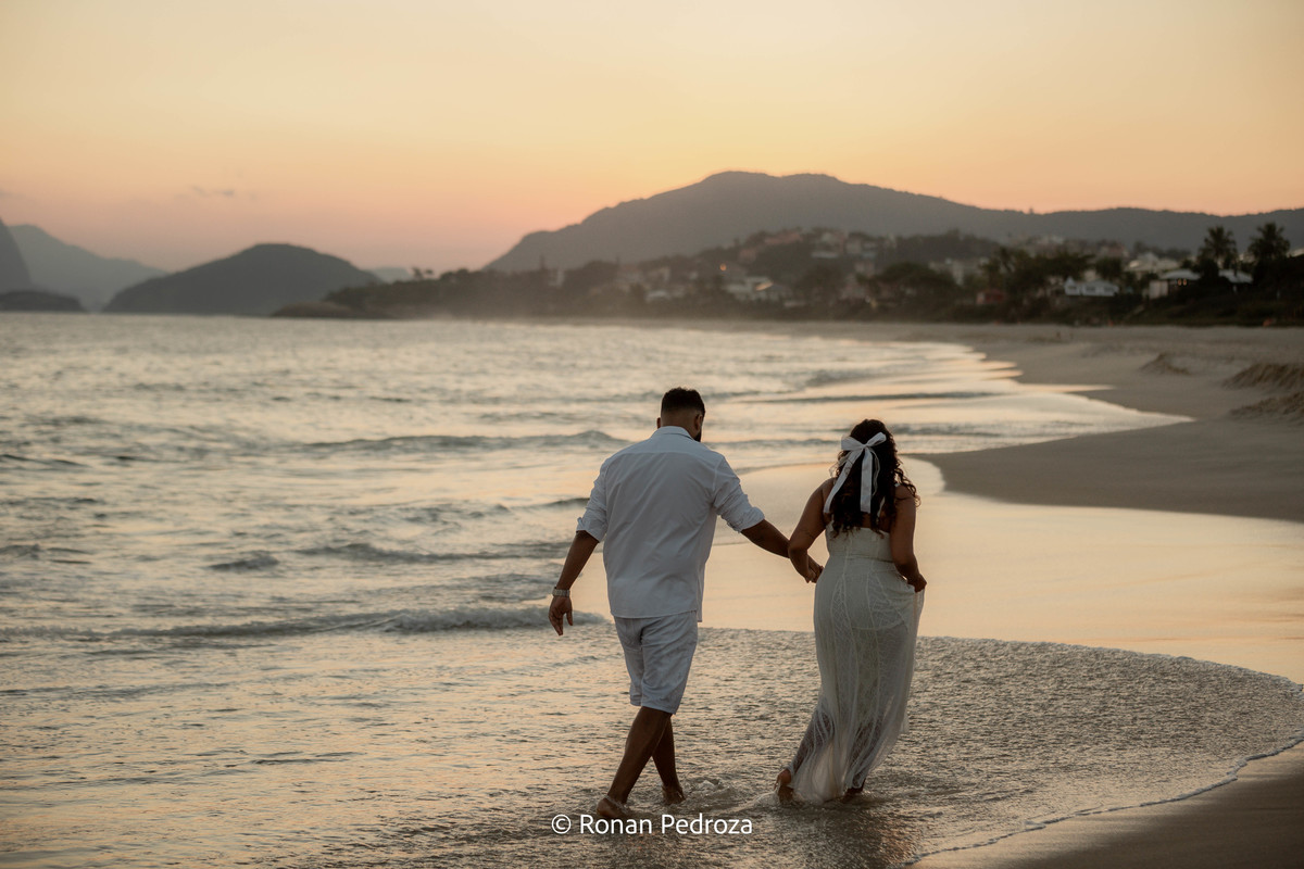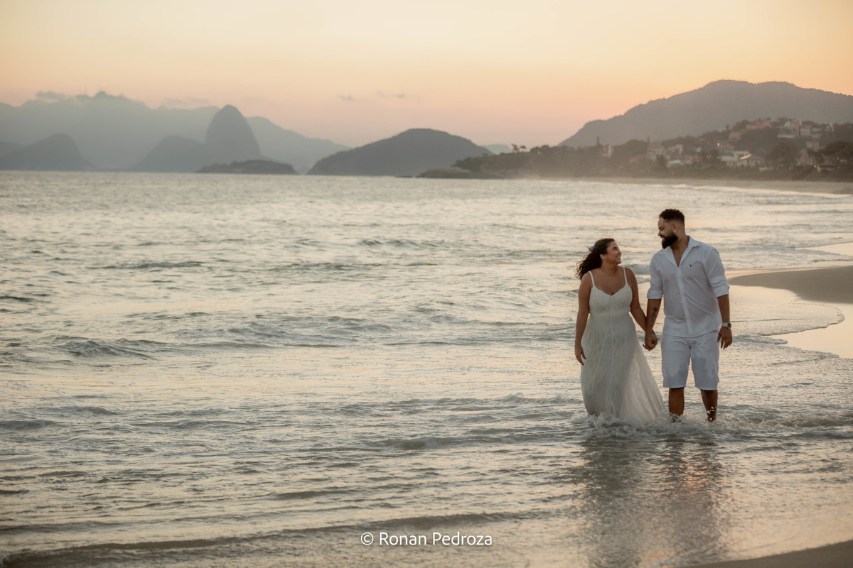 Finalizamos em Niterói, de frente para o mar, com o Rio de Janeiro desenhando sua própria obra de arte no horizonte. As montanhas, o Cristo Redentor ao fundo e o pôr do sol como protagonista completaram o cenário perfeito.
