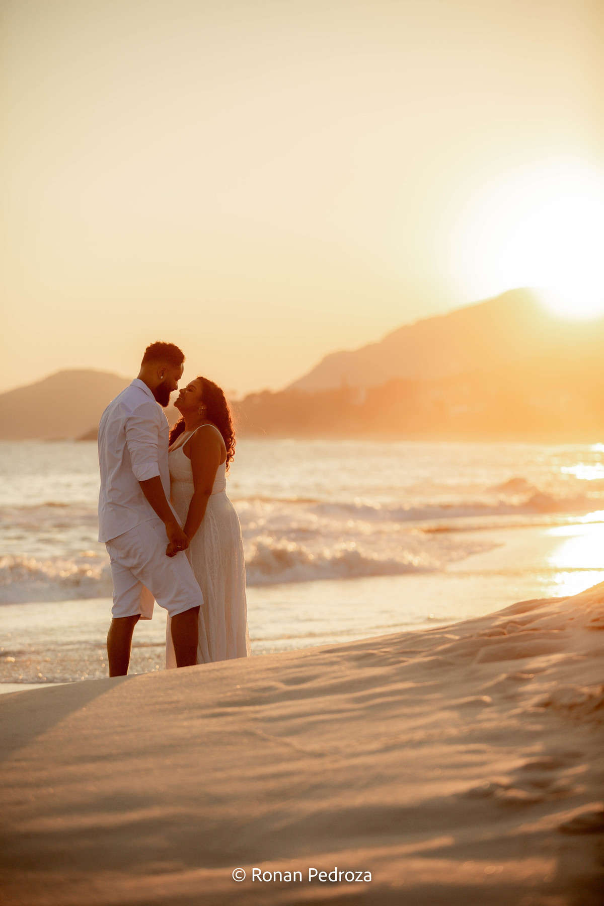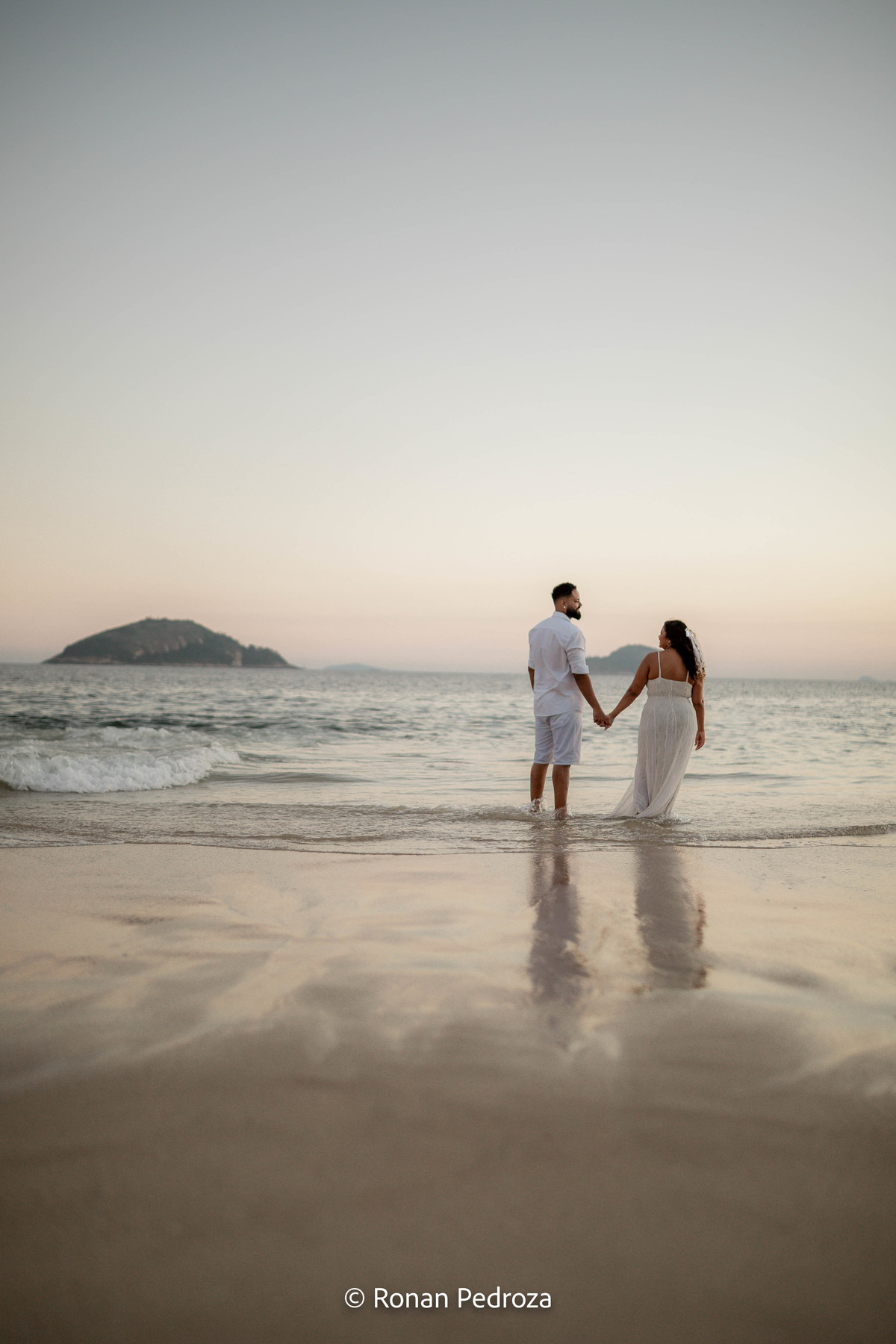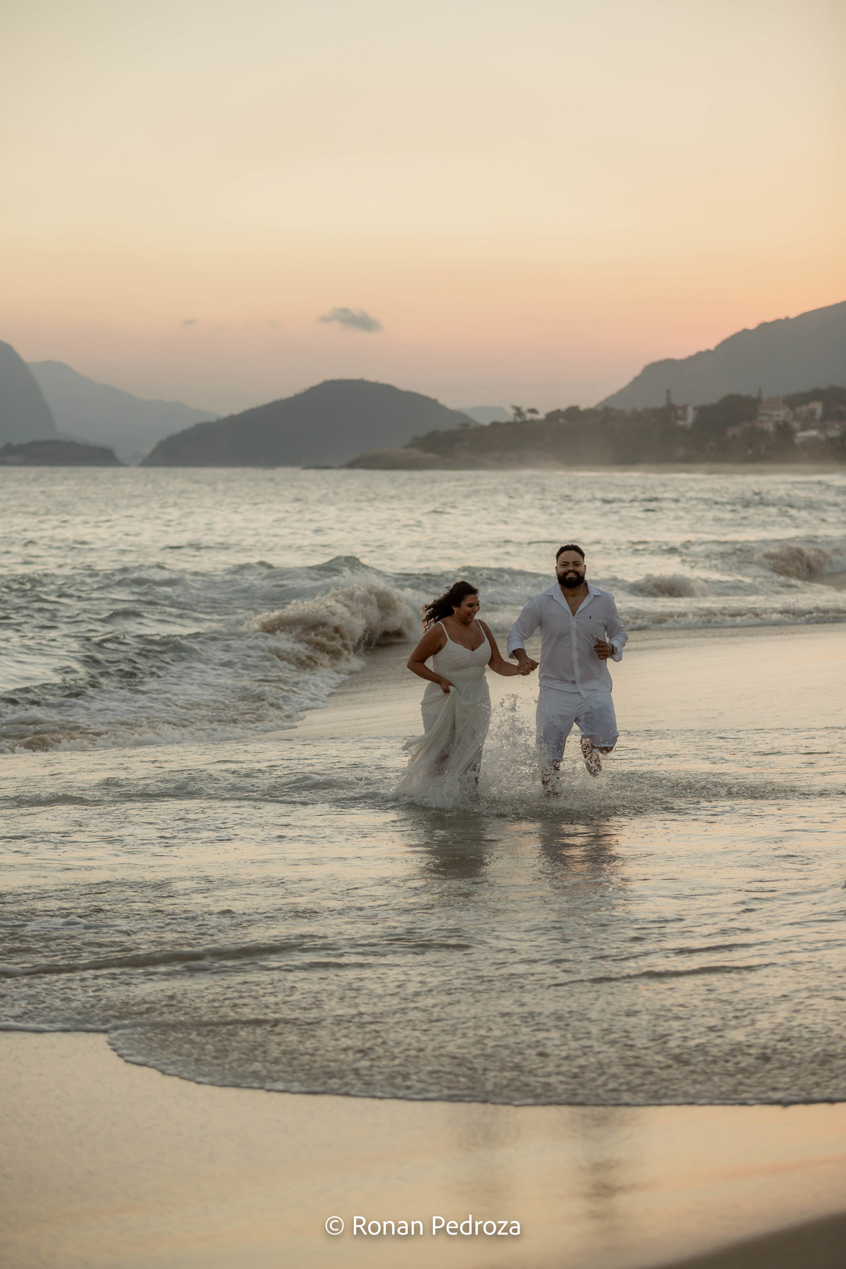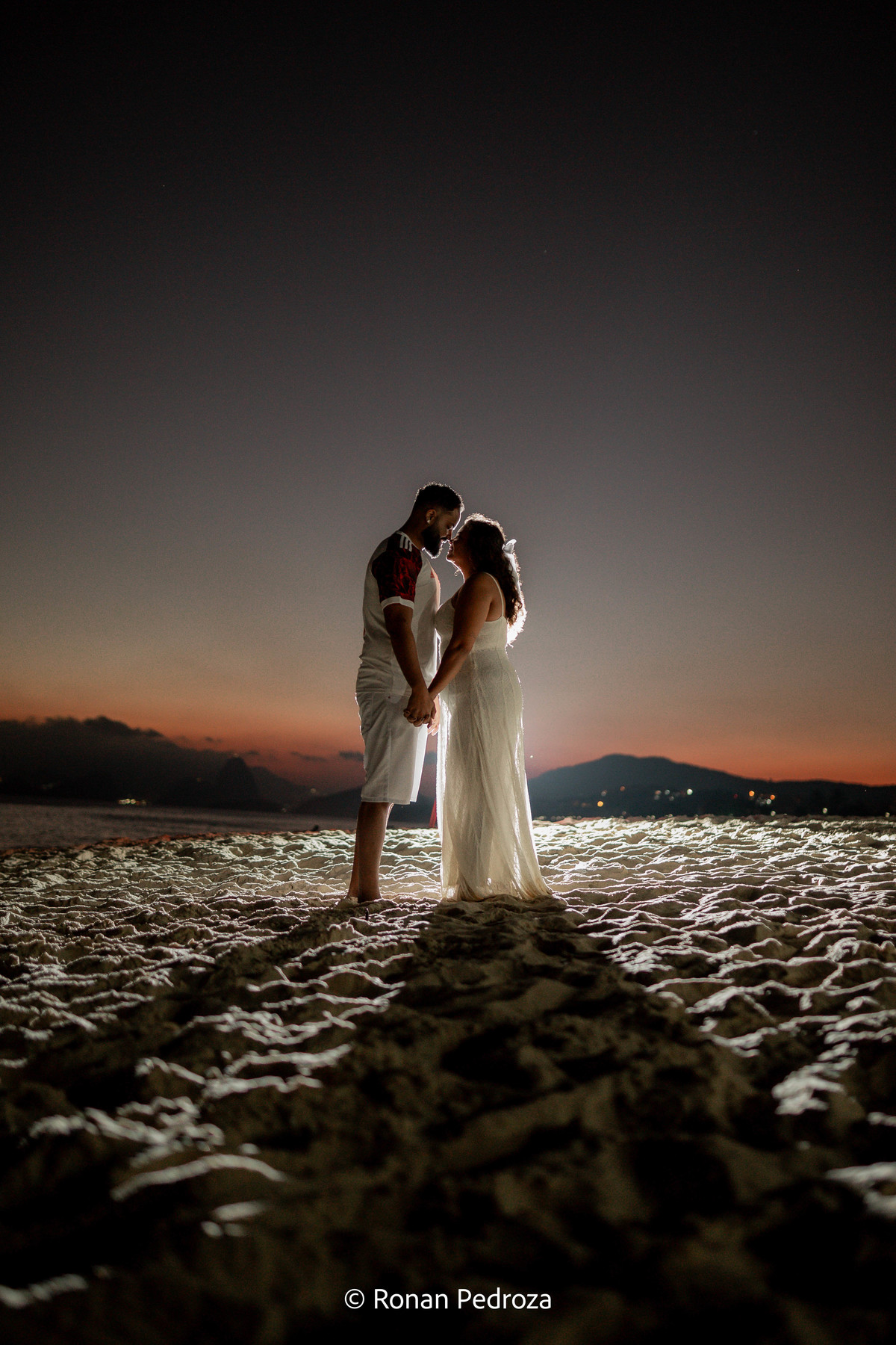 Finalizamos em Niterói, de frente para o mar, com o Rio de Janeiro desenhando sua própria obra de arte no horizonte. As montanhas, o Cristo Redentor ao fundo e o pôr do sol como protagonista completaram o cenário perfeito.