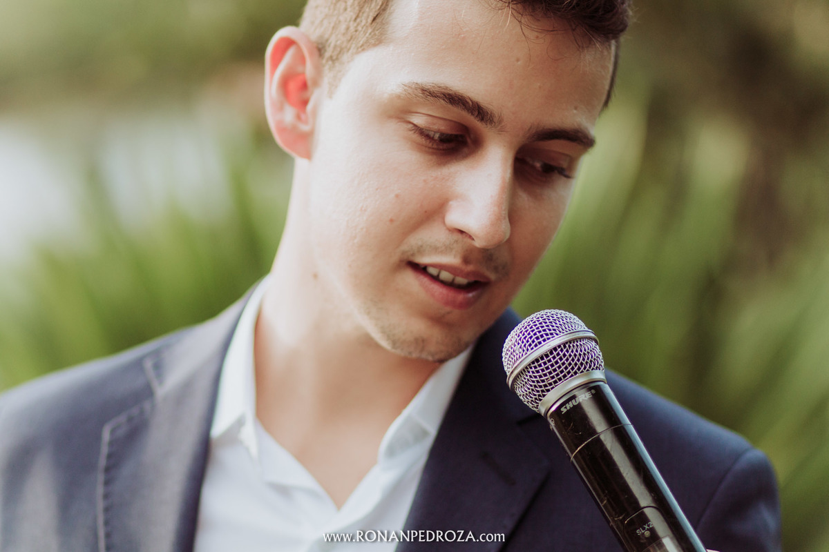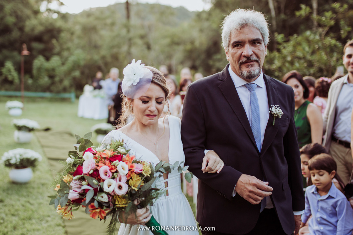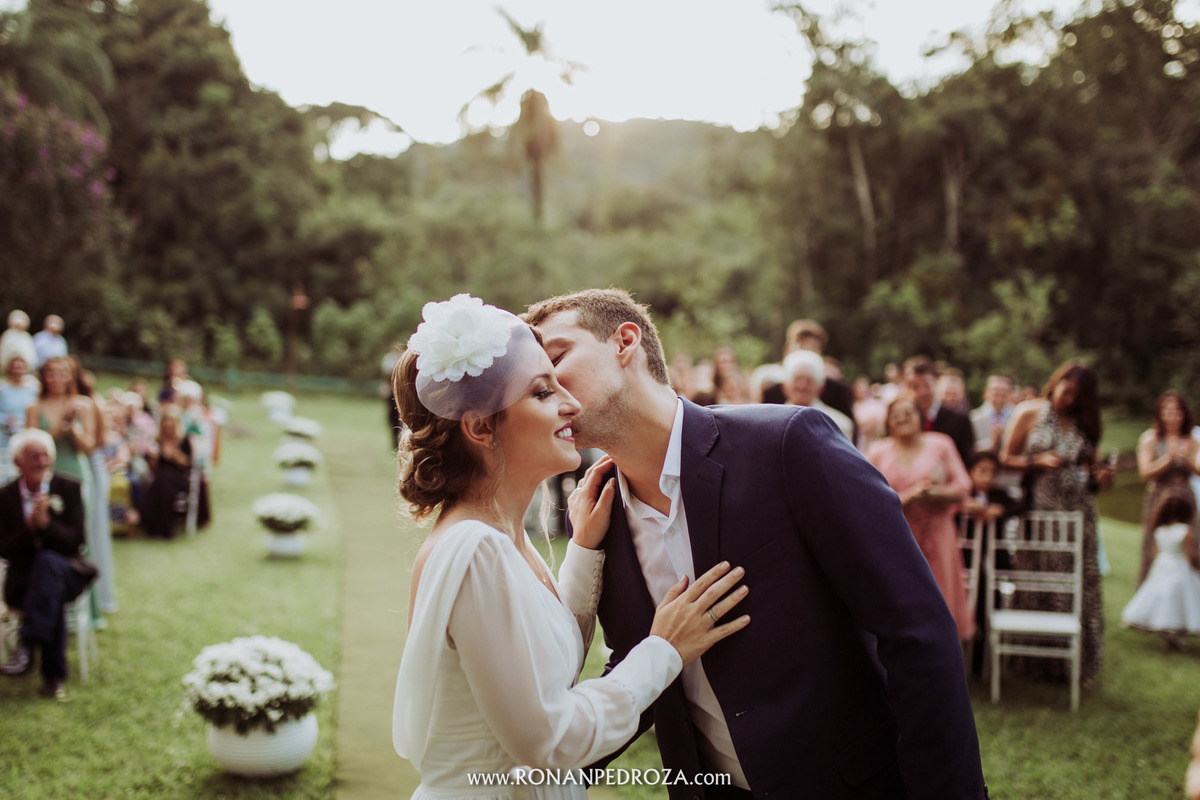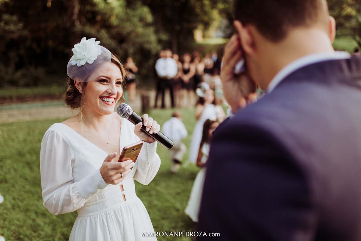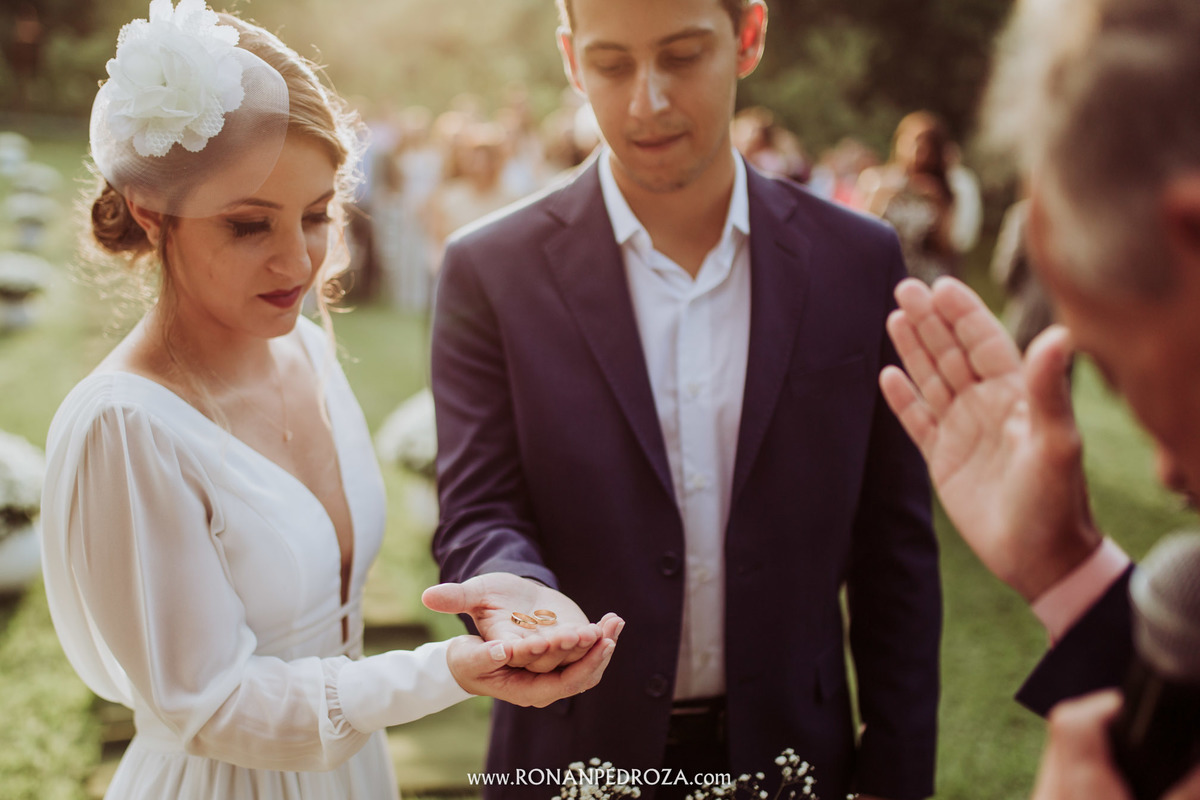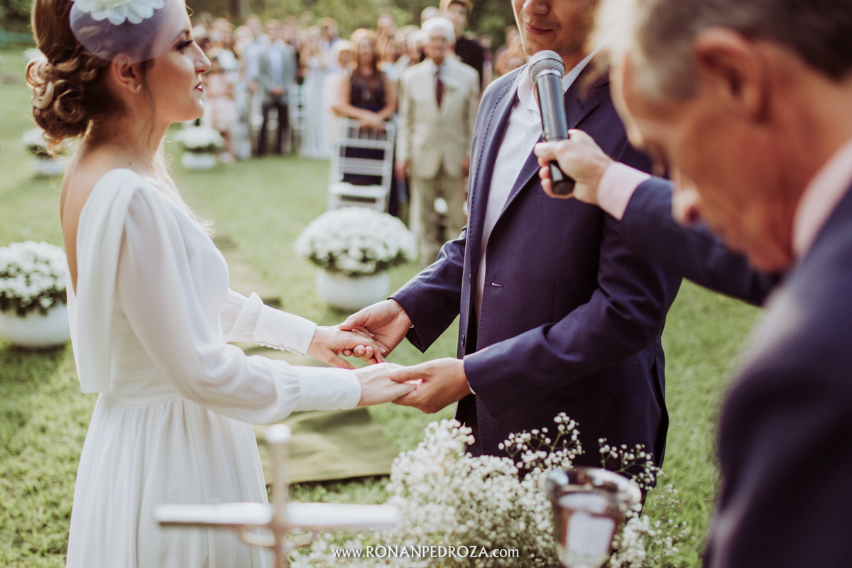 A emoção era tão grande, que dava para sentir a energia que o amor trouxe. Os convidados em lagrimas de alegria, o noivo em seu momento mais emocionante e a noiva, que foi ao altar de pés descalços, para sentir o amor de Deus, as bençãos prometidas e conectada diretamente com a natureza.