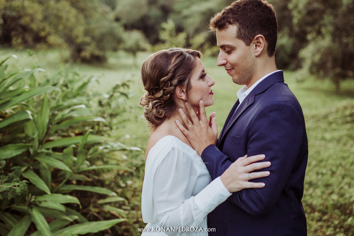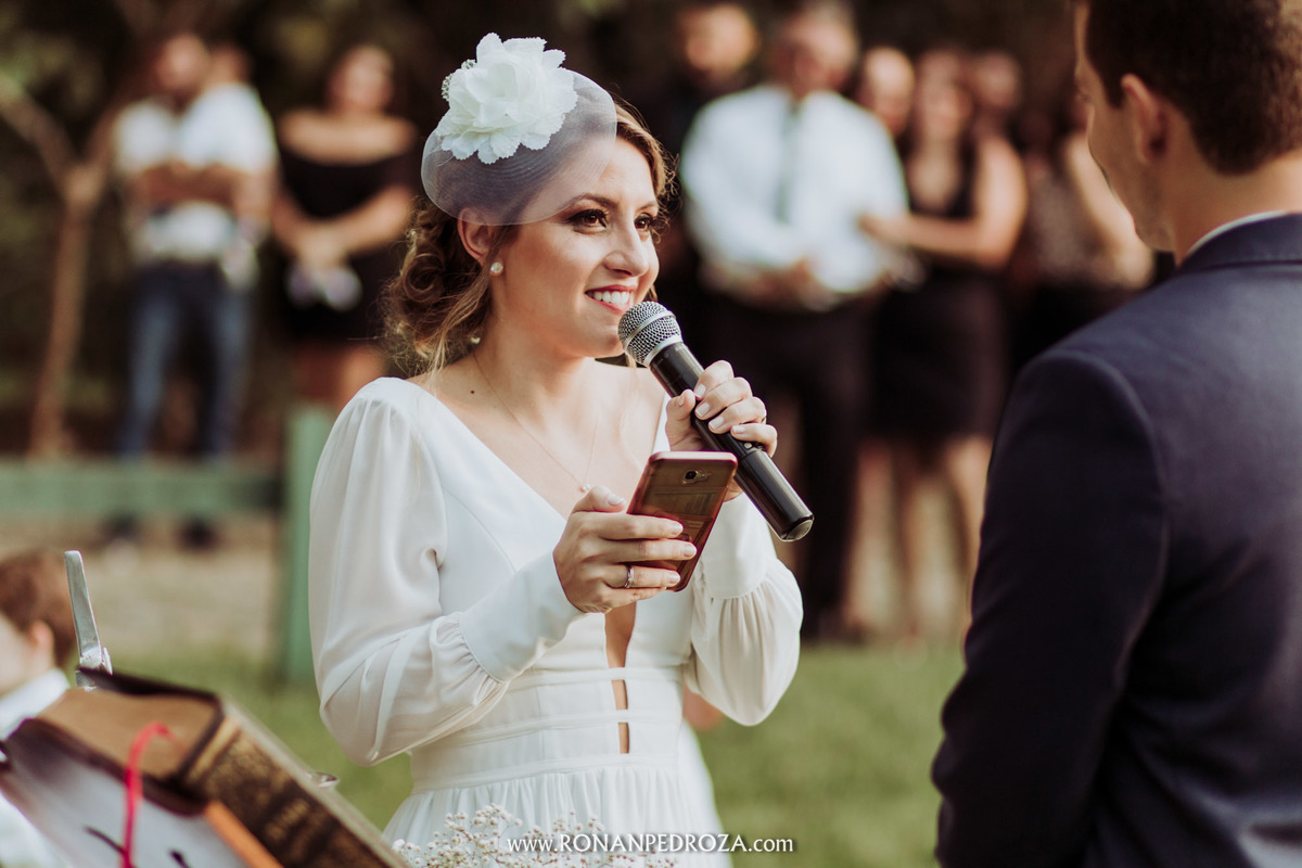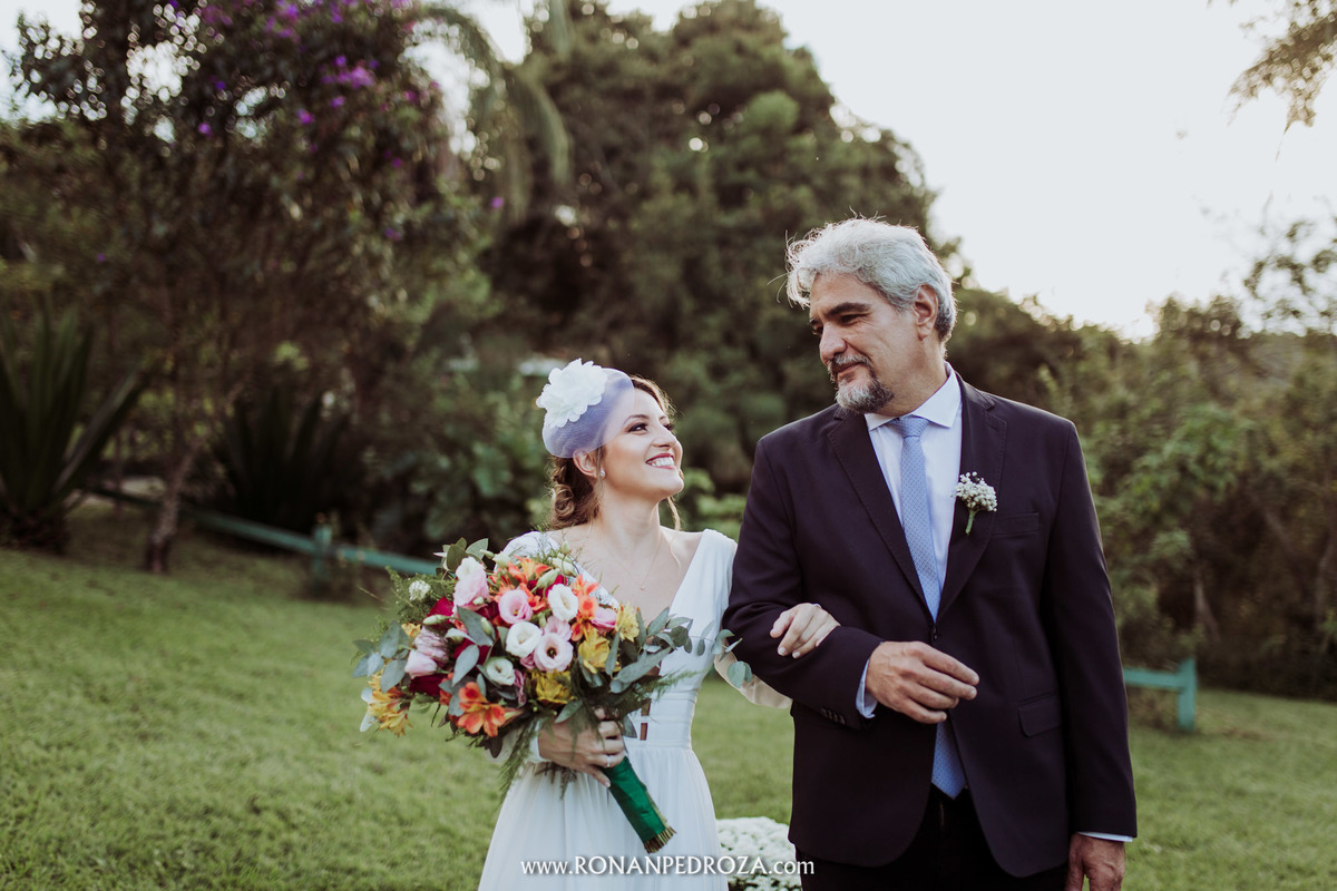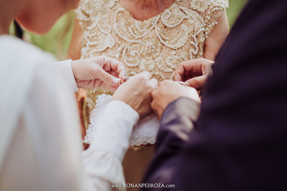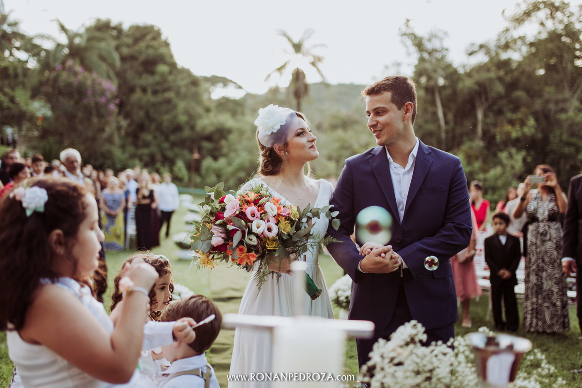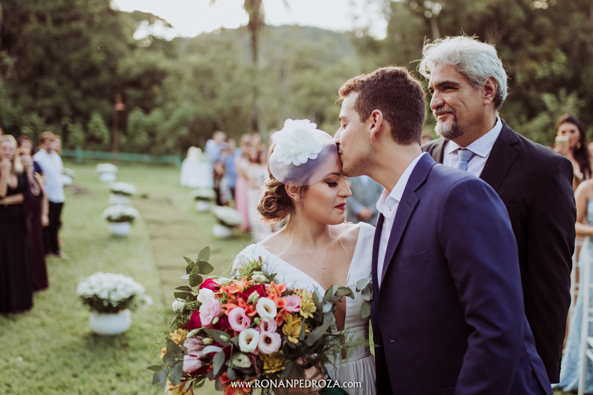 A emoção era tão grande, que dava para sentir a energia que o amor trouxe. Os convidados em lagrimas de alegria, o noivo em seu momento mais emocionante e a noiva, que foi ao altar de pés descalços, para sentir o amor de Deus, as bençãos prometidas e conectada diretamente com a natureza.