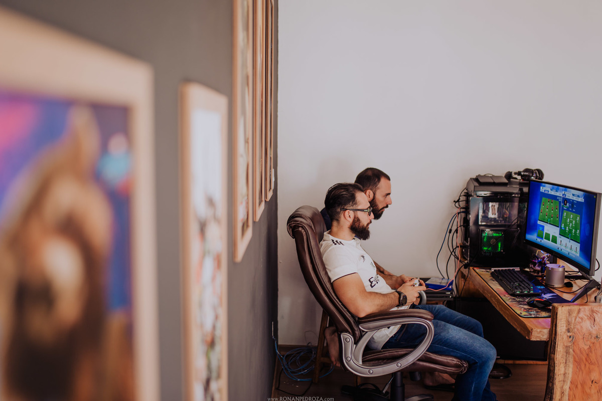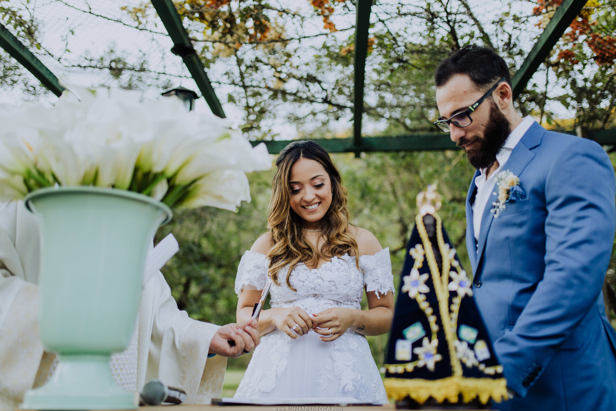 Desde o momento da assinatura do contrato com esse casal lindão, já sabia que este dia seria mega especial, mas não apenas por ser o dia do casamento, sim por toda característica que eles tem. O noivo todo cheio de estilo, arquiteto, que ama games, ela toda meiga, organizadora de eventos, que transborda luz e uma presença incrível de amor na vida.